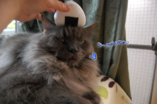 真面目な顔で頭にはオニギリ・・( ´艸`)