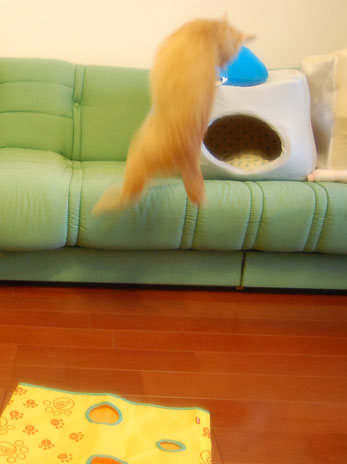 お土産で持って行った、またたびキッカーに夢中な竜ちゃんに