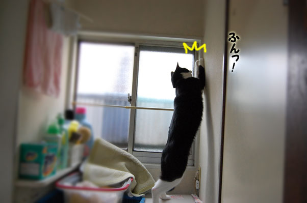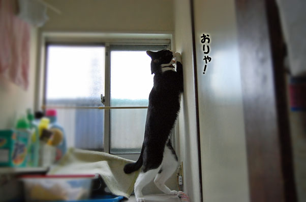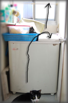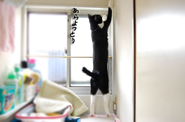 洗濯機に飛び乗って、更にオモチャに飛びついて