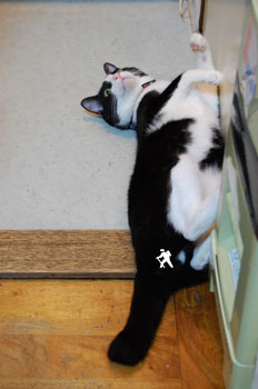 おいらが投げるオモチャキャッチに燃える黒松さん‥