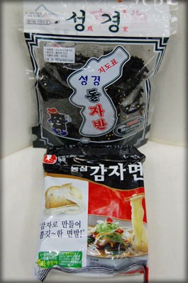 韓国海苔のふりかけと、ジャガイモ麺のラーメン。